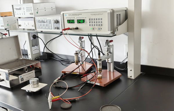 儀器配備標(biāo)準(zhǔn)環(huán)形三電極,適用于一般片狀、薄膜狀的樣品,在這次過程中也有用到標(biāo)準(zhǔn)環(huán)形三電極測試片狀陶瓷片。但是客戶這次帶來的樣品大多數(shù)是中間打孔的陶瓷片,所以吳工在給客戶測試時根據(jù)國標(biāo)《GB/T 10064-1988測定固體絕緣材料絕緣電阻的試驗(yàn)方法》,采用直徑約5mm帶有約2%錐度的干凈黃銅圓錐形插銷電極插入樣品上兩個小孔測試。測試結(jié)果顯示,該陶瓷制品在電阻率方面表現(xiàn)出色,符合客戶預(yù)期。