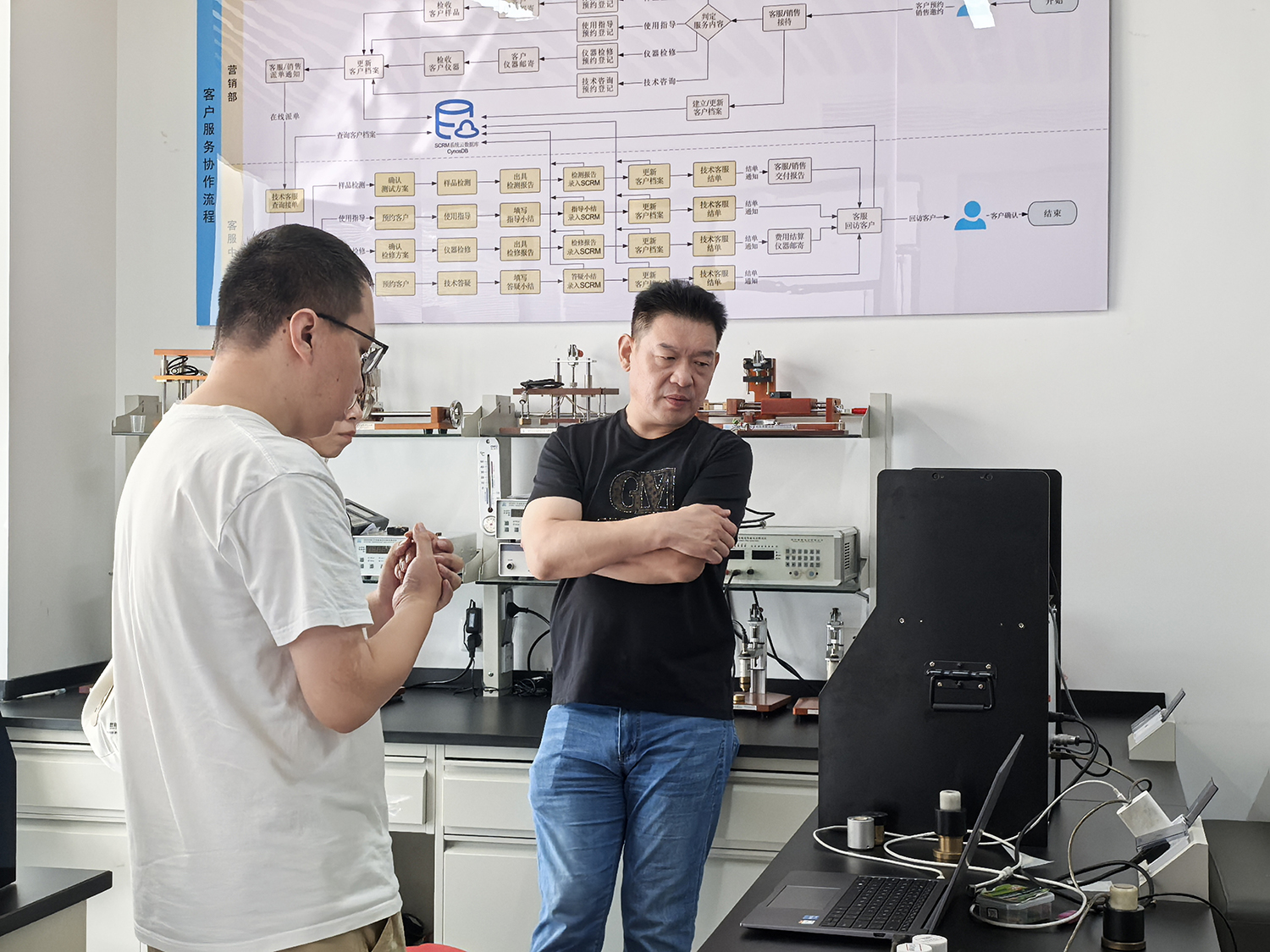 悉騁新材的技術(shù)人員攜帶著最新研發(fā)的銀包玻璃粉末和銀包樹脂粉末,來(lái)到了蘇州晶格,希望用我們的粉末電阻率測(cè)試儀來(lái)測(cè)試這些新型粉末的導(dǎo)電性能。