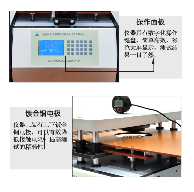 ST2922B型雙極板碳紙接觸電阻測(cè)試儀,可以測(cè)試0.1MPa到4MPa下雙極板碳紙接觸電阻-壓強(qiáng)曲線,蘇州晶格,源頭廠家。氫燃料電池雙極板碳紙接觸電阻測(cè)試儀 電阻率測(cè)量?jī)x 符合國(guó)標(biāo)
