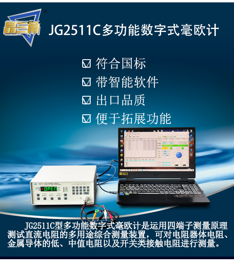 蘇州晶格JG2511C金屬低阻值直流電阻測(cè)試儀,專為導(dǎo)體電阻檢測(cè)設(shè)計(jì),具備卓越的低阻值測(cè)量能力。無(wú)論是金屬導(dǎo)線、焊接點(diǎn)還是連接器,都能輕松應(yīng)對(duì),為您提供精確的電阻數(shù)據(jù)。這款電阻測(cè)試儀操作簡(jiǎn)便、讀數(shù)快速,讓您的檢測(cè)工作更加高效、準(zhǔn)確。蘇州晶格,品質(zhì)保證,值得信賴!蘇州晶格JG2511C金屬低阻值直流電阻測(cè)試儀導(dǎo)體電阻測(cè)量?jī)x源頭廠家順豐包郵