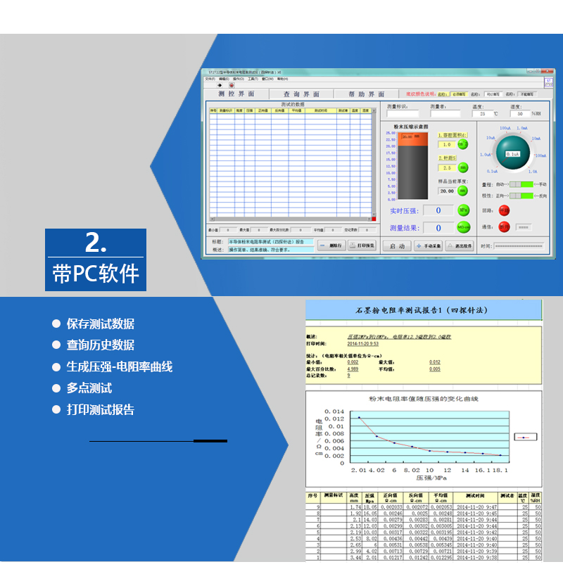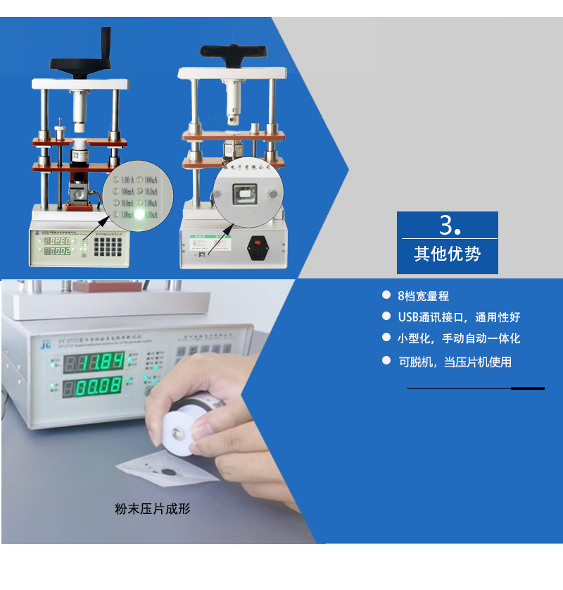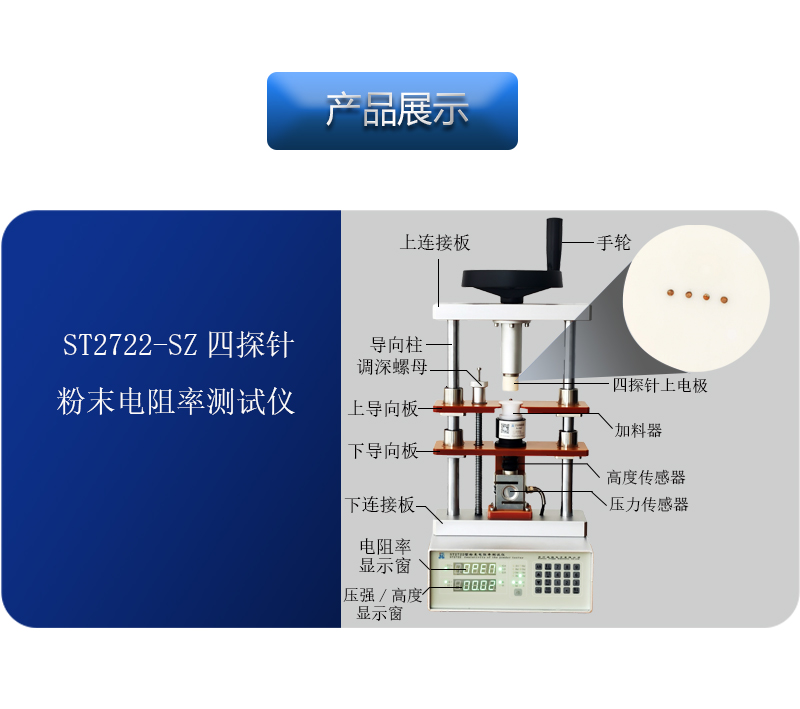 ST2722-SZ型 四探針粉末電阻率測試儀,同步式連續(xù)多點測試粉末電阻率測試儀,是導(dǎo)體、半導(dǎo)體材料電阻率測試儀,一次裝料,電阻率、壓強、高度同步式連續(xù)多點測試,可快速繪制粉末“電阻率-壓強”曲線。應(yīng)用廣泛、符合國標(biāo)、源頭廠家等。公司名稱:蘇州晶格電子有限公司