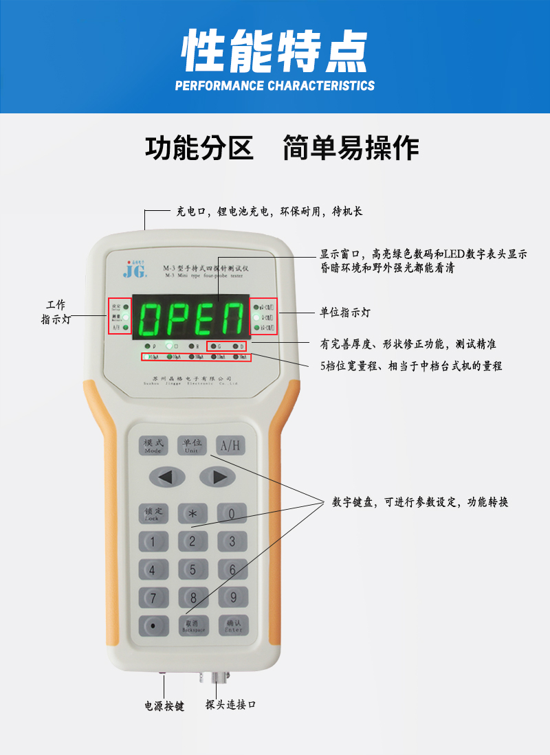 產(chǎn)品名稱:蘇州晶格M-3手持式四探針電阻率測試儀 方塊電阻測試儀 美觀易用 性價(jià)比高 源頭廠家 品質(zhì)保證