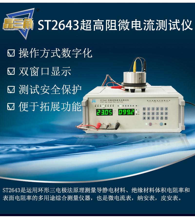 ST2643型體積電阻率測試儀,是絕緣材料體積電阻率測試儀,