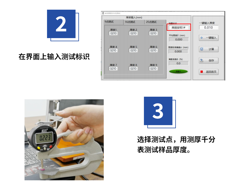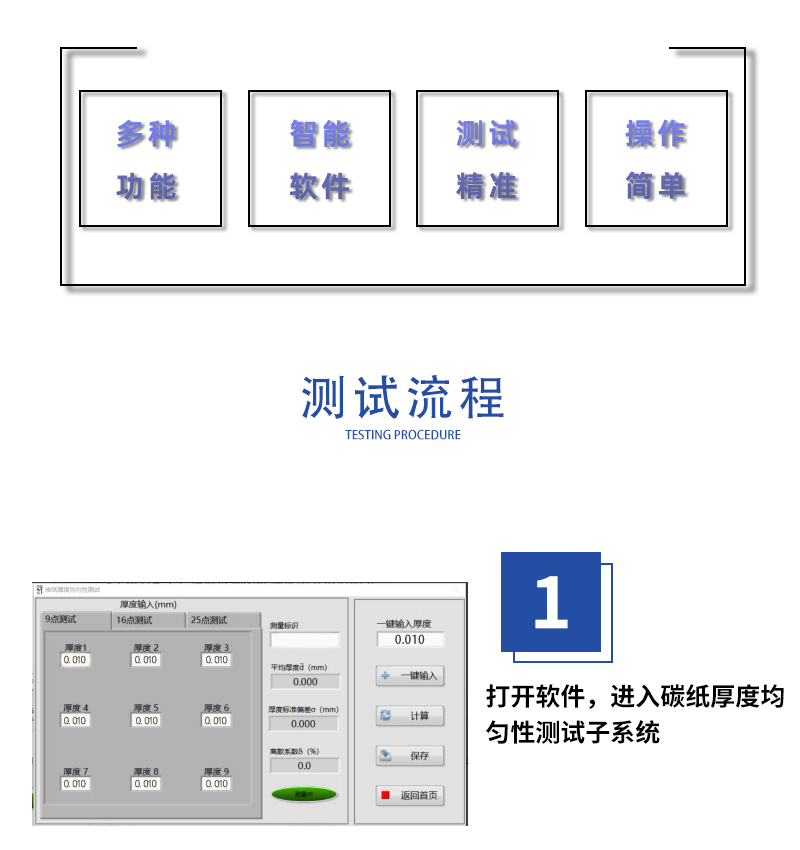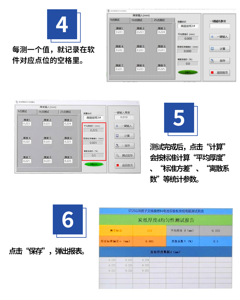 記錄保存測試數(shù)據(jù),自動統(tǒng)計(jì)厚度均勻性